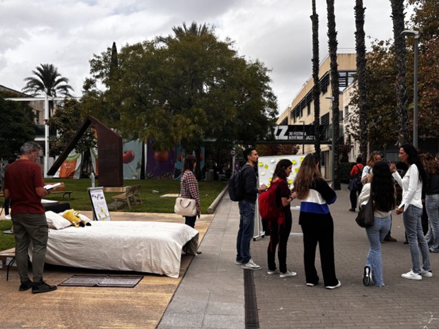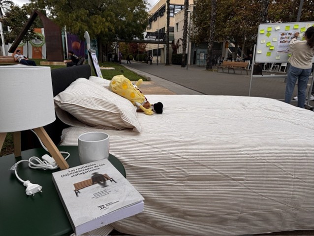 Con esta performance quisimos concienciar sobre una realidad que a menudo pasa desapercibida: si para la mayoría ya es difícil dormir bien por las preocupaciones del día a día, imaginemos cómo es para quienes no tienen un lugar seguro donde descansar. Dormir bien no es solo una necesidad básica, es un derecho universal que demasiadas personas no pueden ejercer.